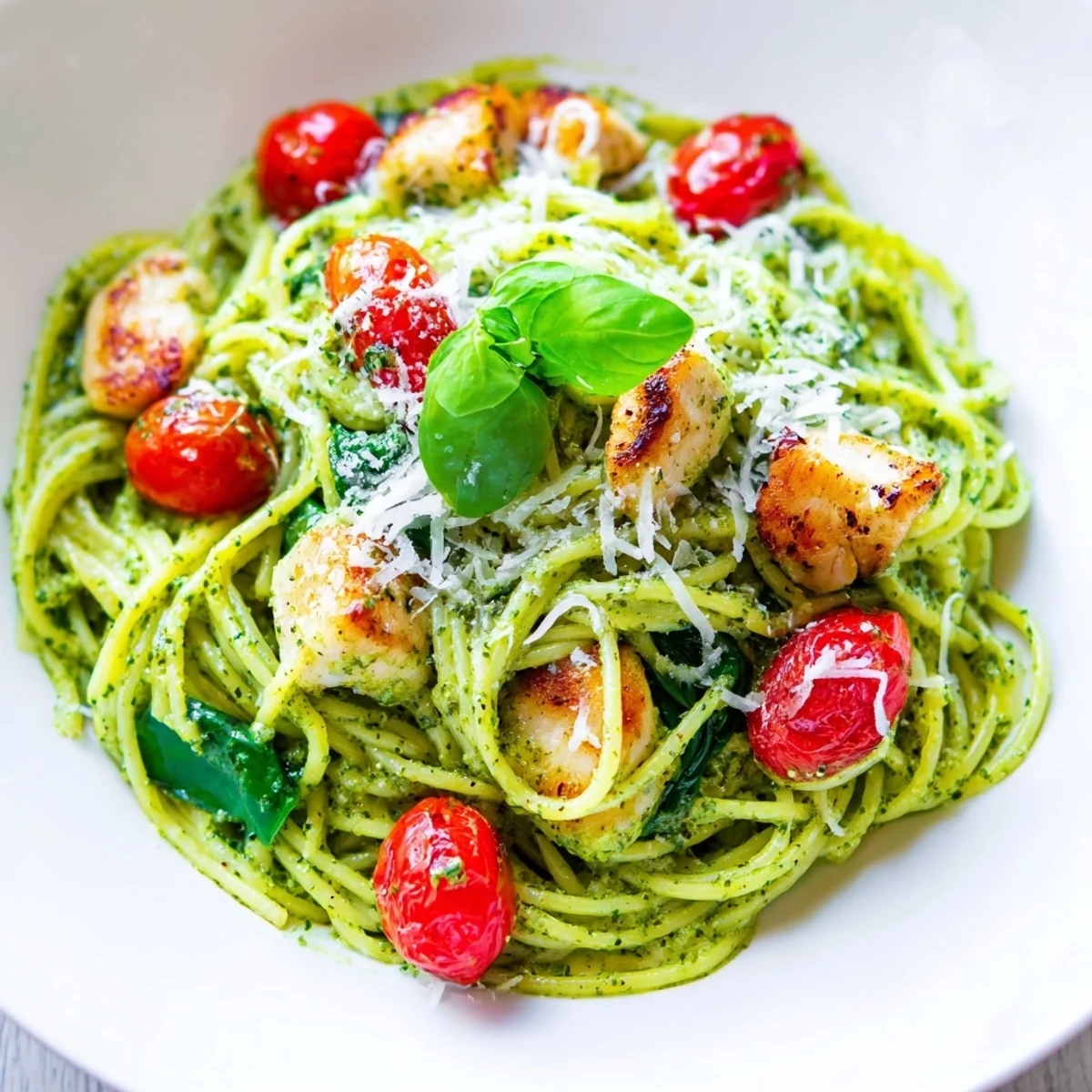 This vibrant dish brings together tender pieces of seasoned chicken breast with homemade fresh basil pesto, coating each strand of al dente pasta beautifully. The preparation comes together in just 35 minutes, making it perfect for busy weeknights when you want something nutritious and flavorful. The pesto blends fragrant basil leaves, toasted pine nuts, garlic, and Parmesan with a bright squeeze of lemon juice, creating a sauce that feels indulgent while remaining light and wholesome. Optional cherry tomatoes and baby spinach add extra color and nutrients, though the dish stands beautifully on its own.